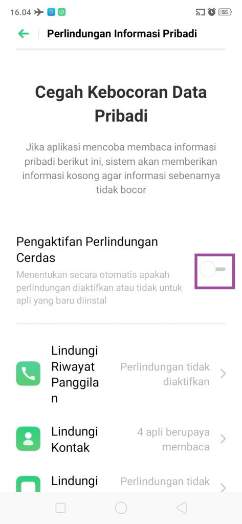 Cara menonaktifkan perlindungan informasi pribadi nya gimana?