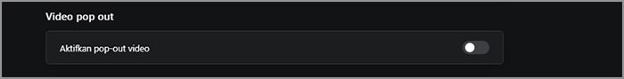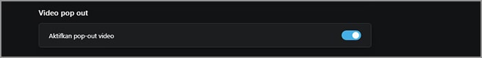 5. Geser tombol ke kanan dan pop-out video sudah aktif.