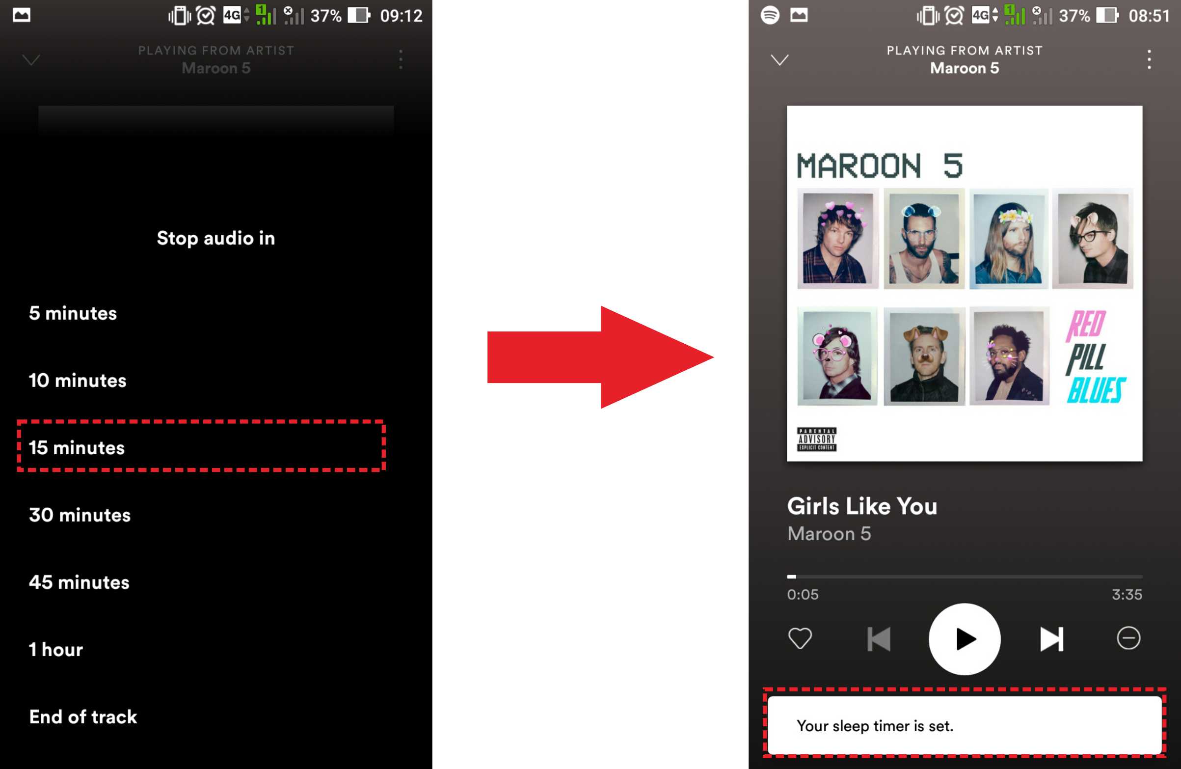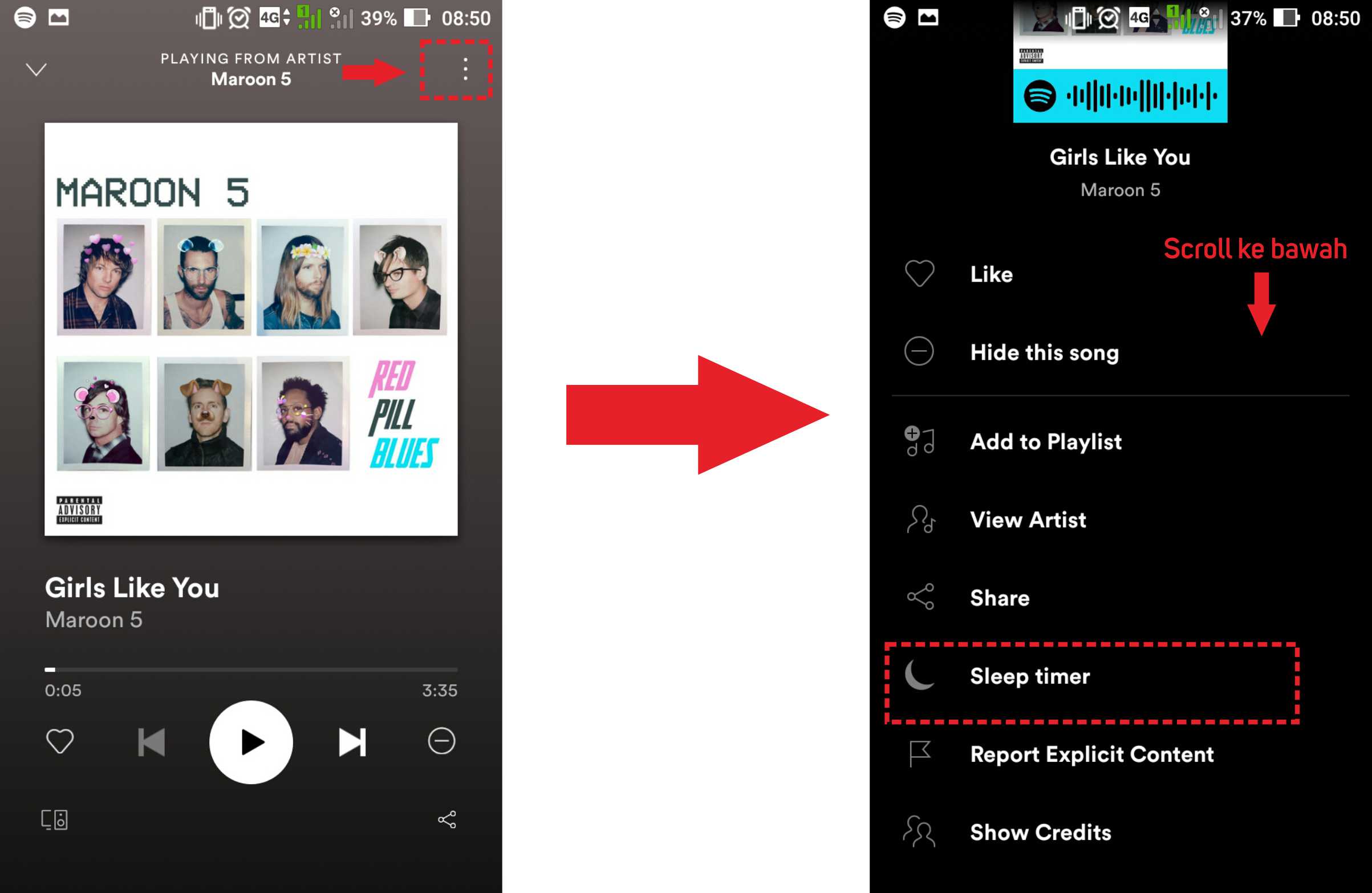 Salah satu fitur menarik yang terdapat dalam aplikasi Spotify adalah fitur sleep timer. Fitur ini memungkinkan kita sebagai pengguna untuk mengaktifkan mode stop secara otomatis sesuai waktu yang kita tentukan. Adanya fitur ini sangat cocok bagi kita yang sering ketiduran ketika sedang mendengarkan musik, sehingga musik tersebut akan dapat berhenti dengan sendirinya. Kali ini penulis akan menjelaskan tutorialnya melalui aplikasi Spotify di android. Adapun langkah-langkahnya dapat dilihat sebagai berikut: