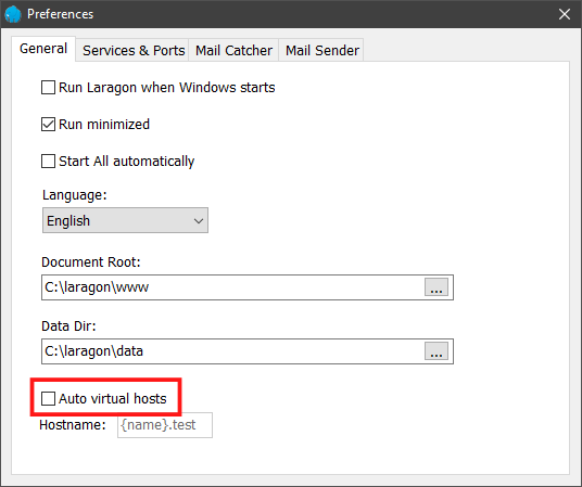 Laragon memberikan banyak sekali keleluasaan bagi penggunanya dalam memanipulasi aplikasi server lokal mereka, sesuai dengan kebutuhan masing-masing. Salah satu fitur yang cukup menonjol pada Laragon ialah pengaturan umum pada Virtual Host, dimana penggunanya dapat lebih mudah dalam mengakses hasil website mereka, tanpa harus melalui cara kuno (seperti akses localhost dan sebagainya)