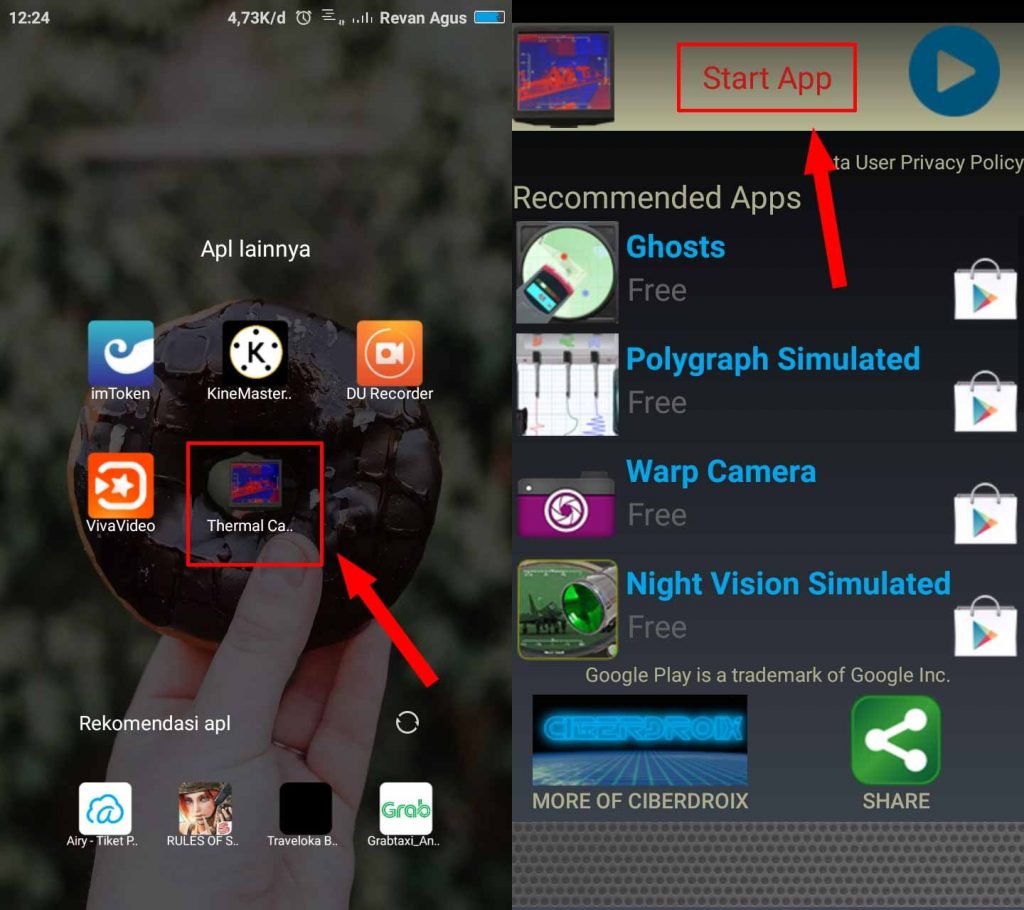 Langkah kedua, setelah berhasil di download dan diinstall buka aplikasi Kamera Thermal Simulasi lalu pada halaman awal tap Start App.