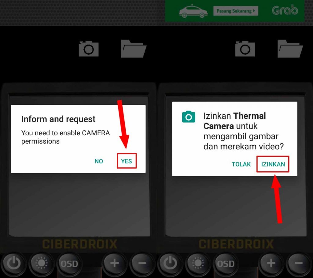 Langkah ketiga, akan muncul pop up untuk mengaktifkan izin pada kamera, tap YES selanjutnya IZINKAN.