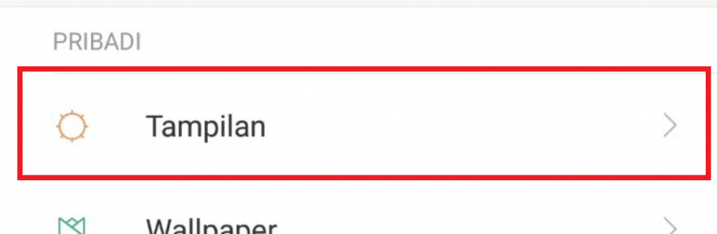 2. Scrool kebawah sampai menemukan menu tampilan, lalu tap menu tersebut.
