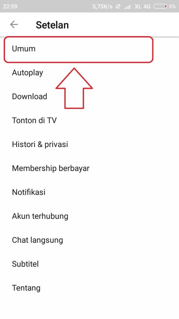 4. Lalu keluar menu baru dan pilih Umum.