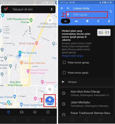 5. Kembali ke peta Google Maps, klik tombol ‘Mulai’. Ketikkan tujuan kamu.