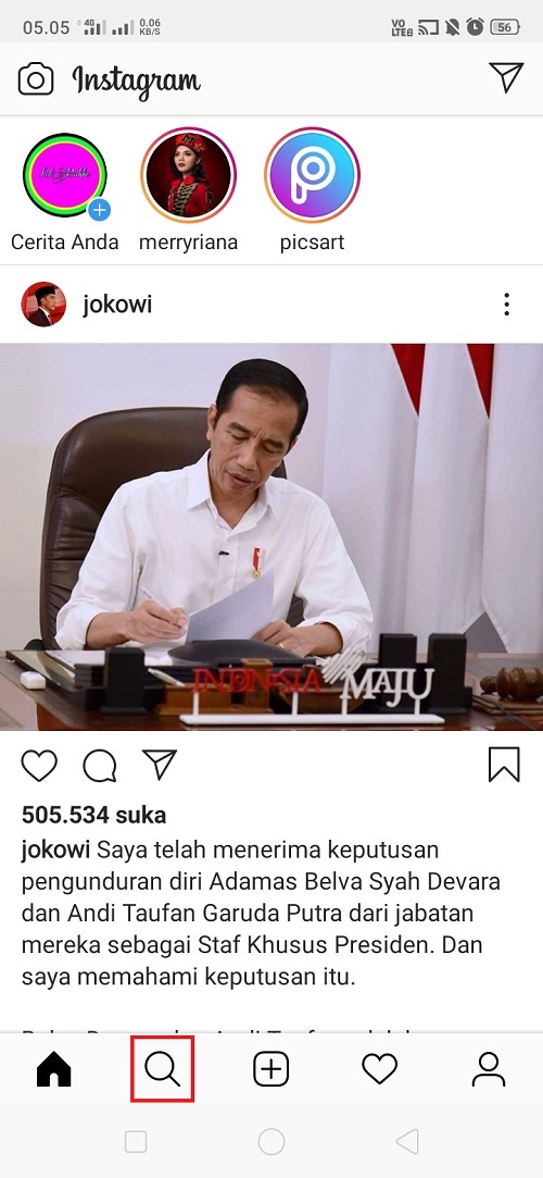 1. Buka aplikasi Instagram yang terinstall di perangkat kamu.