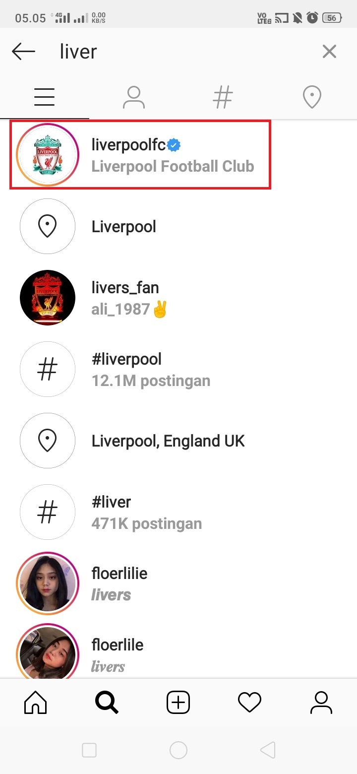 2. Klik ikon ‘Search’ untuk mencari akun favorit kamu.
