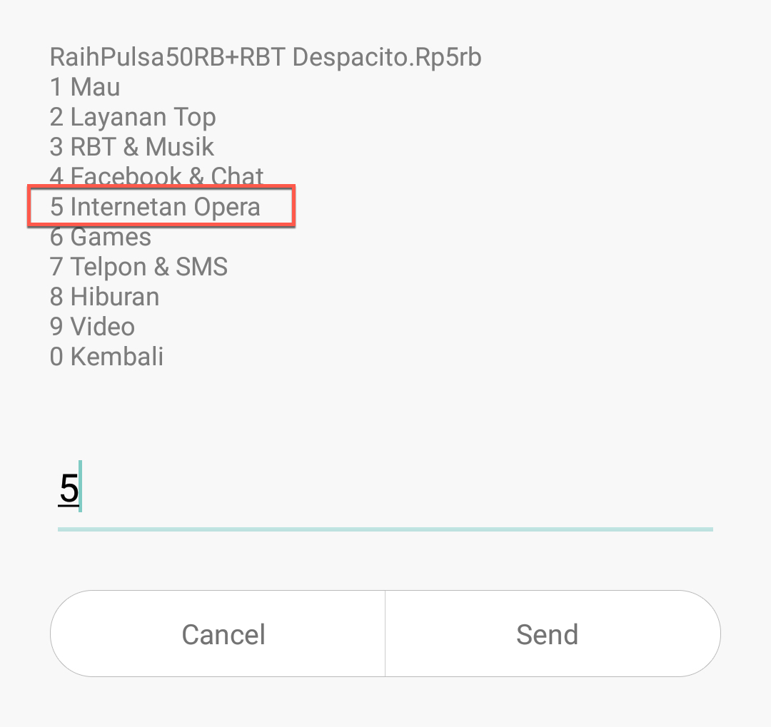 3. Pilih nomor 5. Internetan Opera (Masukan angka 5).