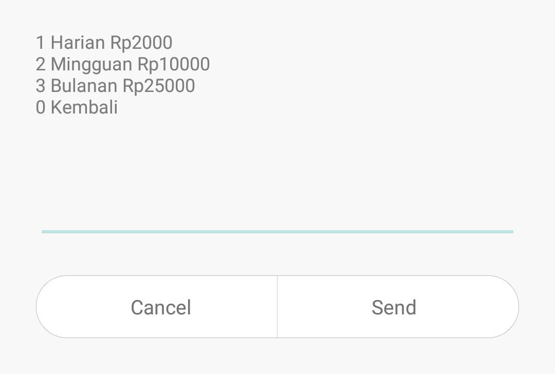 4. Silakan pilih paket sesuai kebutuhan kamu, jika ingin langsung mencoba 1 bulan pilih nomor 3. Bulanan Rp25.000. (masukan angka 3).