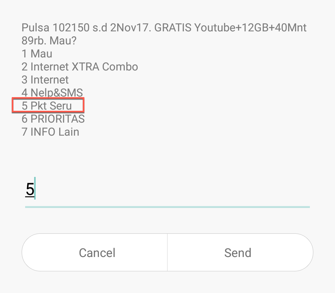 2. Pilih nomor 5. Paket Seru (masukan angka 5)
