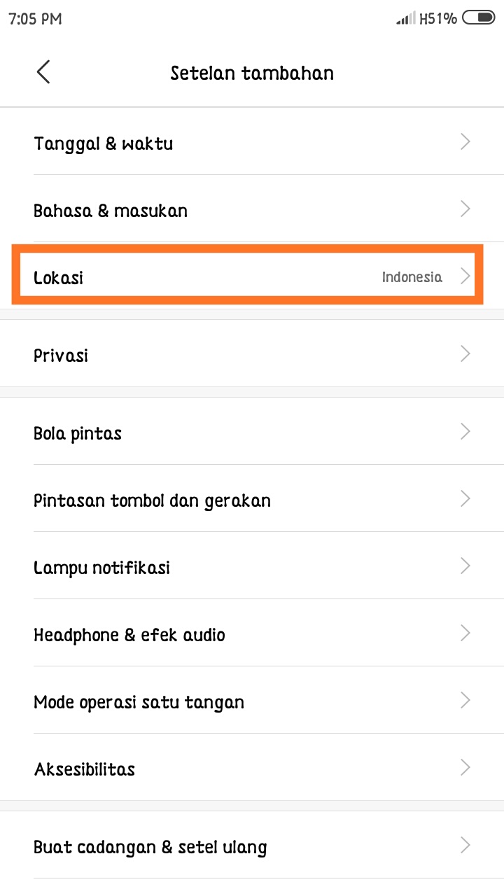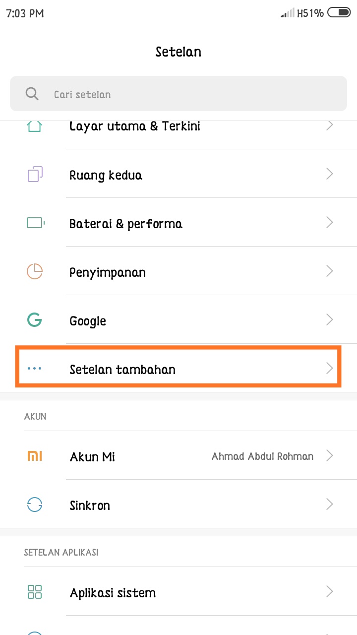 1. Buka menu pengaturan (settings) – kemudian pilih menu Setelan Tambahan.