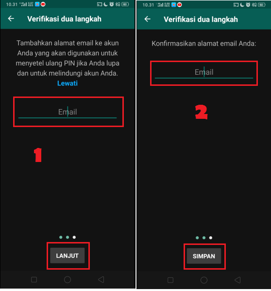 Masukkan alamat email aktif kamu jaga-jaga bila kamu lupa pin, dan klik tombol lanjut. Konfirmasi alamat email tersebut, dan klik tombol lanjut.