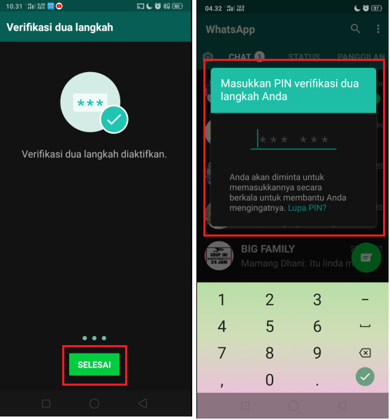 4. Selesai, verifikasi dua langkah di akun WhatsApp kamu sudah selesai. Untuk menghindari lupa pin, aplikasi WhatsApp akan secara berkala meminta kamu memasukkan pin ketika membuka aplikasi WhatsApp. Mudah sekali bukan?.