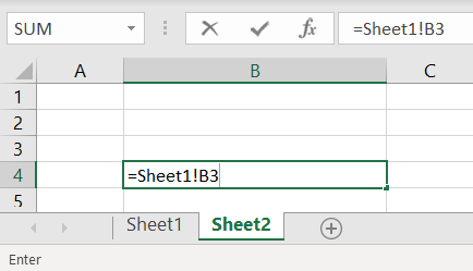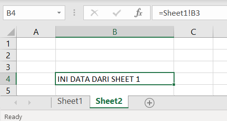 Contoh : pada kasus diatas dimana data yang akan diambil berada di sheet Sheet1 dan cells pada Sheet1 tersebut adalah B3, maka kamu cukup mengetiknya seperti