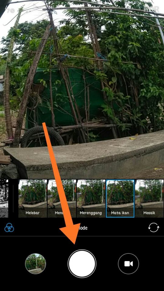 Kemudian layar tampilan pemotretan akan berubah menjadi efek fisheye.