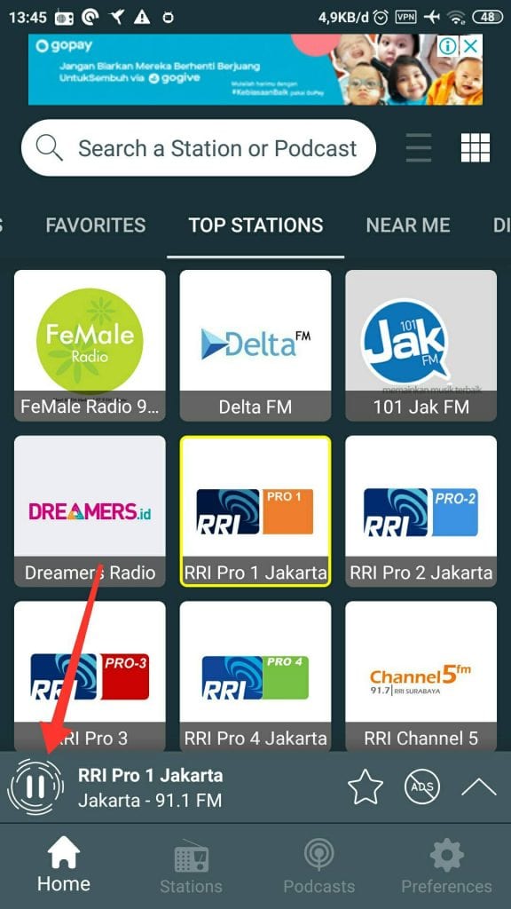 1. Aplikasi streaming yang hendak kita korek URL sumbernya. Disini saya akan menggunakan aplikasi Radio Indonesia – Radio Online, Radio FM.