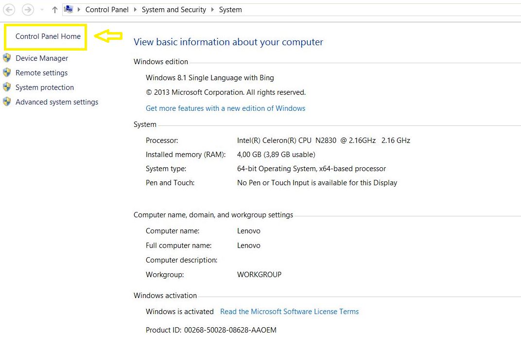 3. Kemudian selanjutnya kamu pilih Control Panel Home.