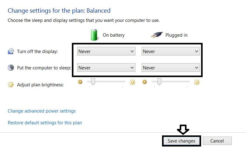 7. Disinilah kamu mengatur posisi baterai kamu, silahkan kamu atur dengan mengubah menjadi Never semua. Setelah itu jangan lupa kamu Save.
