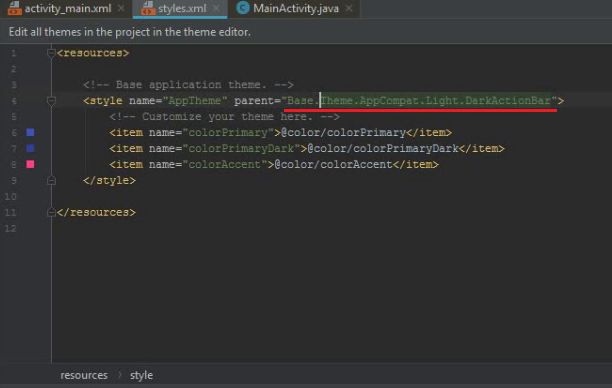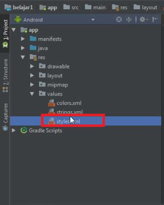 1. Pada proyek kamu, kamu cari berkas dengan nama styles.xml di folder res – values.