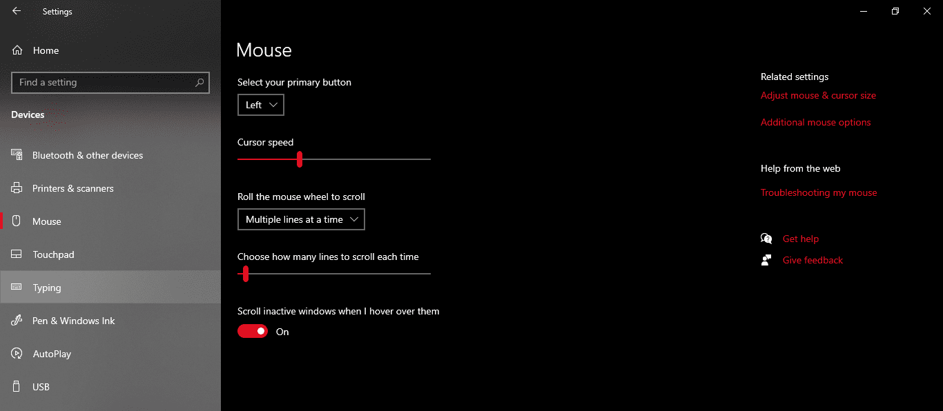 3. Fokus pada bagian Roll the mouse wheel to scroll, lalu pilih Multiple lines at a time sebagai opsi utamanya. Jangan lupa untuk aktifkan Scroll inactive windows when i hover over them dengan cara klik toggle icon menjadi On.