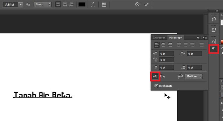 Catatan: Hal ini terjadi pada aplikasi Adobe Photoshop CS6, karena pada aplikasi Adobe Photoshop CS6 sudah teratur secara default dimana direksi paragrap-nya dimulai dari kanan ke kiri sehingga kita harus merubahnya menjadi dari kiri ke kanan seperti kita menulis pada umumnya.