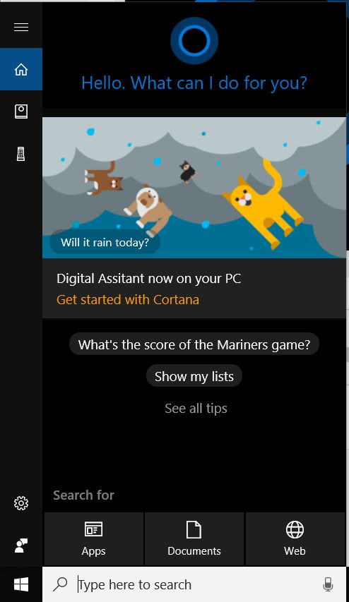 6. Jika sudah, kamu klik pada kolom pencarian yang ada di taskbar laptop kamu, secara otomatis akan muncul informasi mengenai Cortana yang sudah bisa digunakan.