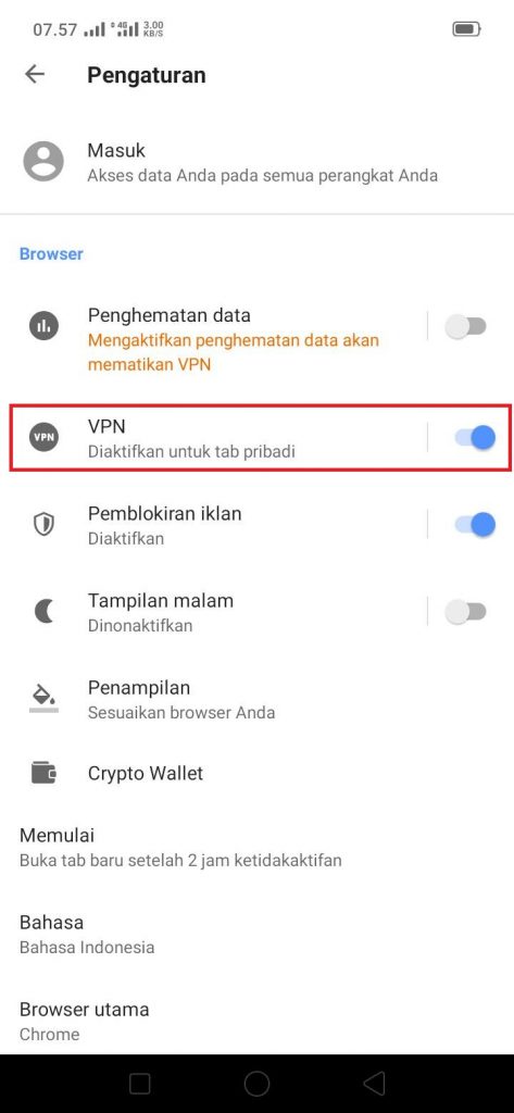 Demikian. Cara mengaktifkan VPN di Opera Android.