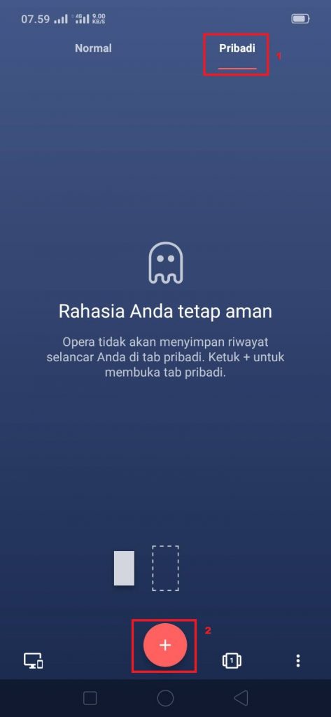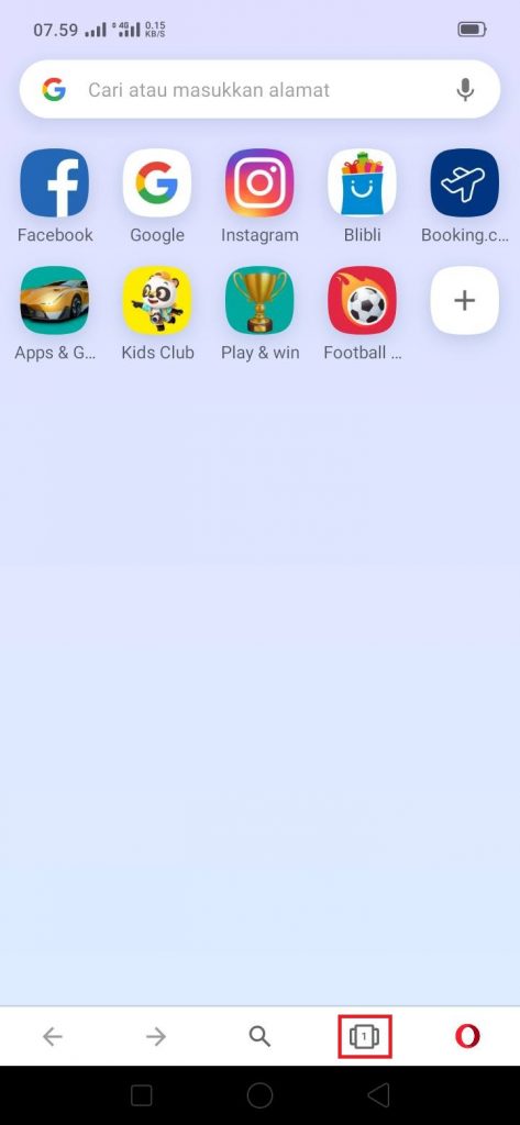 6. Kembali ke tampilan homepage Opera. Klik halaman tab.