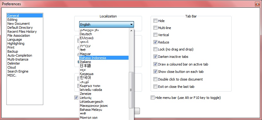 Berikut cara mengatur bahasa localization pada Notepad++.