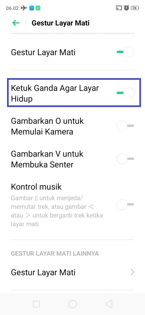 5. Hal terakhir yang harus dilakukan adalah aktifkan ‘Ketuk Ganda Agar Layar Hidup’.