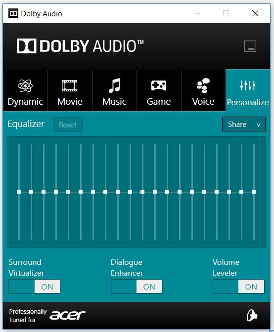 Catatan: seperti yang pada tahap 1 sudah saya jelaskan, setiap PC/Laptop yang sudah terpasang perangkat keras speaker dari dolby, maka pada sistem operasi Originalnya atau pada saat kamu membeli Laptop/PC-nya, maka akan terpasang secara otomatis aplikasi Dolby Audio, dan jika kamu tidak memiliki aplikasi dolby audio, sebenarnya ada cara yang cukup sederhana tapi sudah untuk mendapatkan bahannya, yaitu dengan mengunduh driver software dari dolby audio tersebut sesuai dengan merk dan tipe dari Laptop/PC kamu, misalnya dalam kasus penulis adalah seperti ini “Acer Nitro 5 AN515-52 Drivers Download” dan pada hasil pencarian google, terdapat situs resmi acer yang memberikan semua driver yang biasanya dipasang pada laptop penulis.