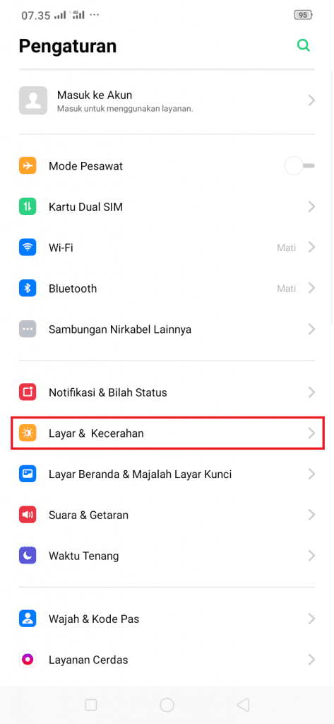 3. Tekan Layar & Kecerahan.
