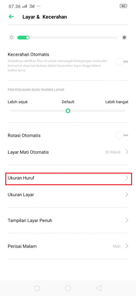 4. Tekan Ukuran Huruf.