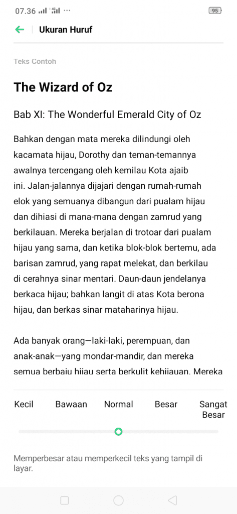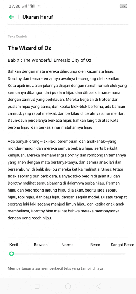 Jadi, kamu bisa melakukan pengukuran teks sendiri untuk tampilan layar di HP Realme kamu seperti membaca berita, forum, diskusi, tanya-jawab, dan sebagainya. Lakukanlah pengukuran teks yang pas dan nyaman untuk dilihat oleh mata kamu. Biasanya, bagi kamu yang memiliki masalah pada mata yakni rabun jauh / dekat atau silinder sehingga kamu tidak bisa melihat segala ukuran teks, terutama ukuran teks yang kecil.
