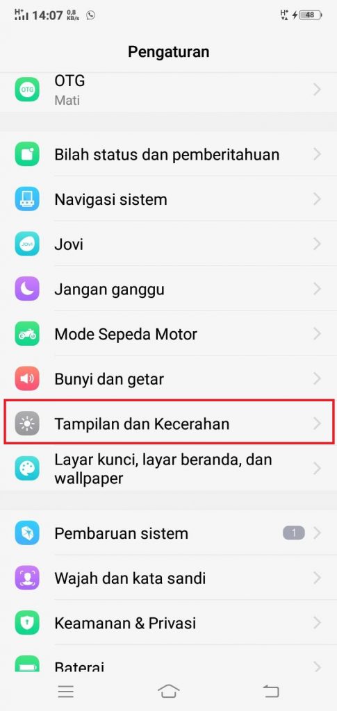 3. Tekan Tampilan dan Kecerahan.