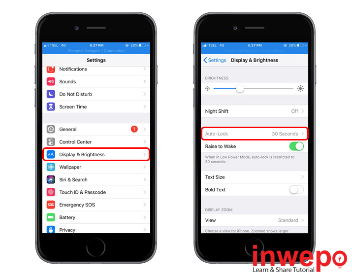 1. Pergi ke Settings – Ketuk Display & Brightness – Ketuk Auto-Lock.