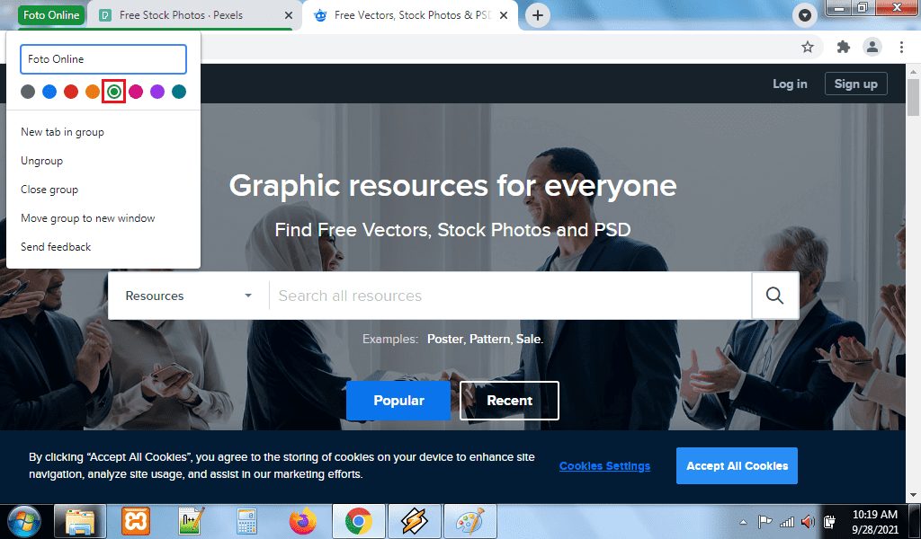 2. Ketikkan nama group dari situs tersebut, dan untuk membuatnya lebih menarik pilih warna yang berbeda untuk setiap group. Klik tombol enter di keyboard perangkat kamu. Lakukan langkah serupa untuk membuat group lainnya di aplikasi browser Google Chrome.