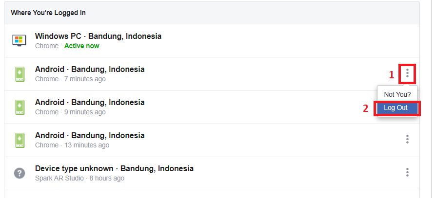 Catatan : dengan melakukan tindakan ini, tanpa kamu sadari kamu telah melakukan tindakan yang membuat akun Facebook kamu lebih aman, karena mungkin saja seseorang menemukan perangkat yang dimana ada akun Facebook kamu yang masih terlogin sehingga dia bisa menjahili akun Facebook kamu.
