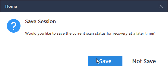 6. Untuk menyimpan hasil scan, pilih menu Home dan Yes. Fungsi menyimpan hasil scan ini yaitu untuk menghemat waktu agar tidak melakukan scan ulang sehingga memudahkan kamu mengembalikan data di lain waktu.