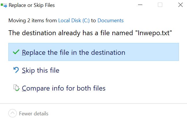 File yang di-replace adalah file yang mengalami perubahan data di dalamnya. Kita bisa melakukannya dengan cara memberikan nama file baru sama dengan nama file yang lama. Dan ketika pengguna ingin menyimpan file tersebut di lokasi penyimpanan yang sama, maka Windows akan bereaksi memberikan notifikasi. Ya, notifikasi yang diberikan ini sebenarnya adalah bagian dari Windows untuk mencegah kesalahan yang mungkin tidak disadari oleh pengguna.