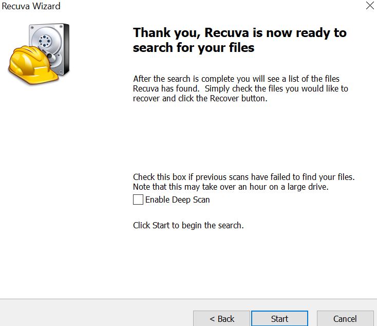 5. Centang bagian enable deep scan. Lalu pilh Start. Tunggu hingga proses scanning selesai.