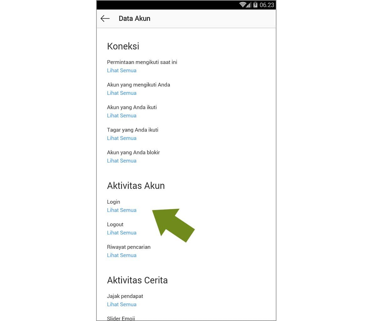 4. Silakan gulir ke bawah pada data akun. Di aktivitas akun, silakan kamu ketuk lihat semua pada login.