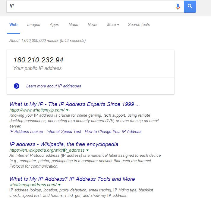 Ada kalanya ketika bermain game online atau keperluan tertentu kamu perlu mengetahui alamat IP publik—sebuah alamat di mana komputer atau Internet bisa melakukan kontak dengan komputer kamu dan atau digunakan saat komputer kamu melakukan kontak dengan komputer lain. Jika kamu menggunakan ISP (Internet Service Provider) yang menyediakan alamat dynamic IP, maka nantinya IP kamu akan berubah-ubah selama kamu online. Dan jika menggunakan proxy server atau VPN (Virtual Private Network), dengan menampilkan IP “publik”, kamu bisa memastikan bahwa kamu benar-benar mengakses Internet lewat layanan terhubung.