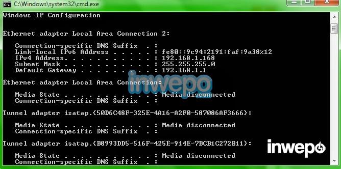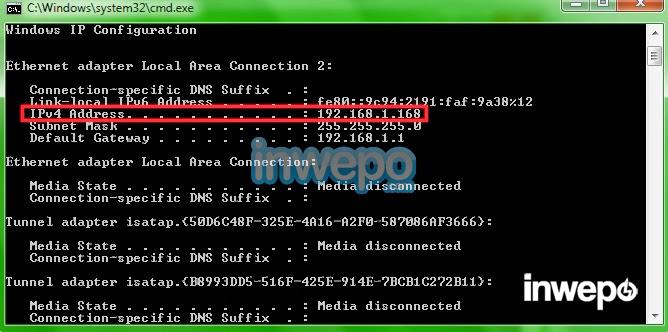 Itu mungkin cara termudah menurut penulis. Bagaimanapun, ada cara lain untuk mengetahui IP Address lokal kalian, begini: