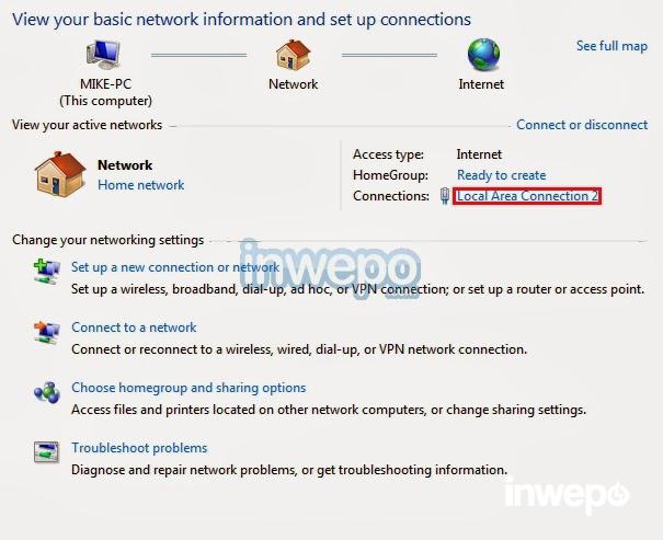 5. Kalian akan melihat jaringan yang terhubung saat ini di tengah layar, sebagai contoh pada gambar, yaitu Local Area Connection 2: