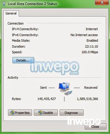 6. Setelah di klik, kalian akan melihat status dari sambungan internet kalian (yaitu Locak Area Connection 2), lanjutkan dengan mengklik tombol Details…