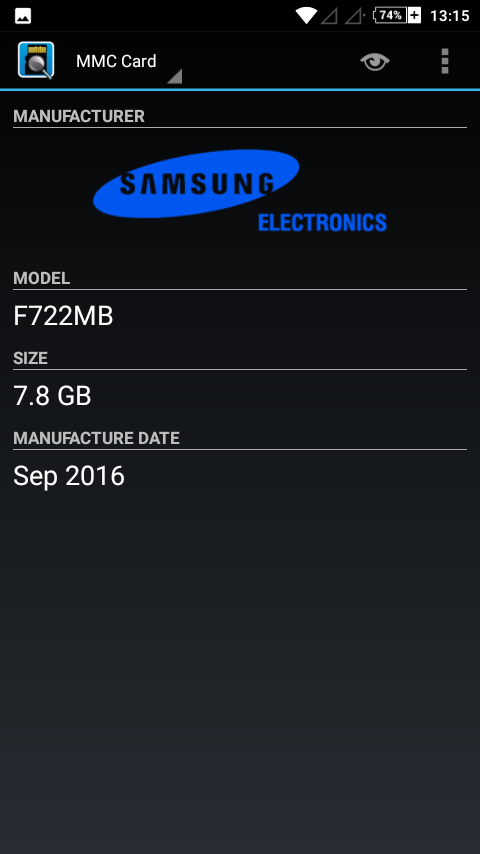 3. Di pilihan menu pojok kiri atas (sebelah logo SD Insight) kamu juga bisa merubahnya ke MMC Card untuk tahu merk MMC internal bawaan Android kamu.