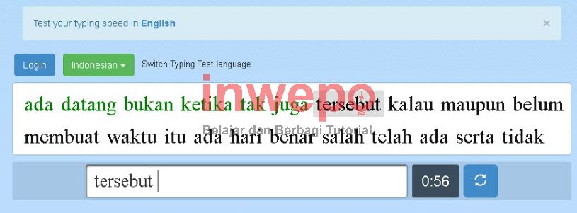 3. Dengan cepat, kamu ketik sebuah kata-kata yang ada pada situs tersebut, kamu bisa menggunakan backspace untuk menghapus beberapa huruf sebelum kamu lanjut ke kata sebelumnya agar hasil yang kamu dapatkan tidak berwarna merah.