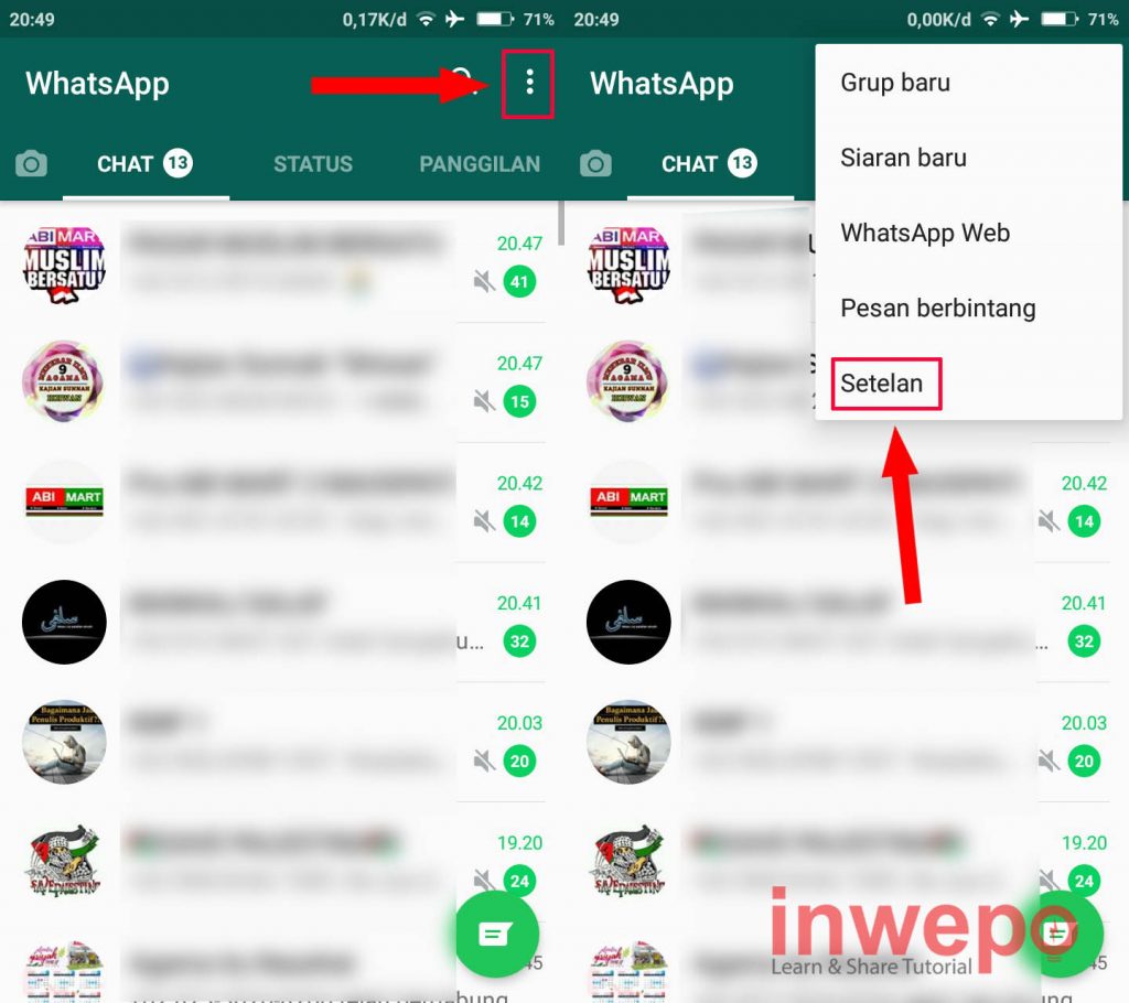 1. Langkah pertama, buka aplikasi WhatsApp seperti biasa kemudian tap 3 titik di pojok kanan atas lalu pilih Setelan.