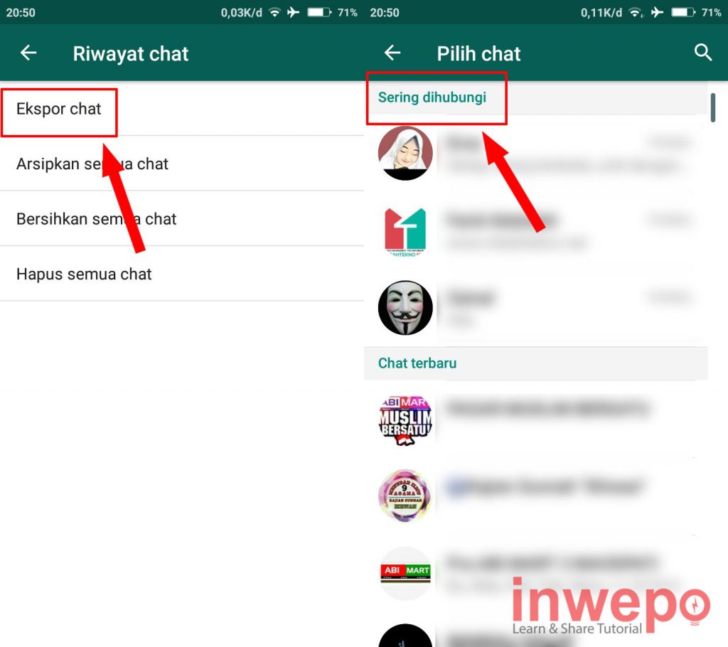 3. Langkah ketiga, pada menu Riwayat Chat langsung pilih Ekspor Chat maka nanti akan muncul kontak-kontak yang sering kali dihubungi.